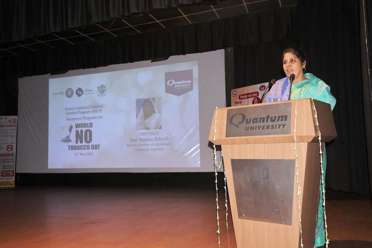 Roorkee, 31st May 2025 – In a powerful demonstration of its commitment to student well-being, public health, and social responsibility, Quantum University observed World No Tobacco Day 2025 with an inspiring campus-wide event. Organized in collaboration with the District National Tobacco Control Program (NTCP) Team, Haridwar, the event brought together students, educators, medical professionals, legal experts, law enforcement authorities, and community leaders with one shared goal — a tobacco-free society.